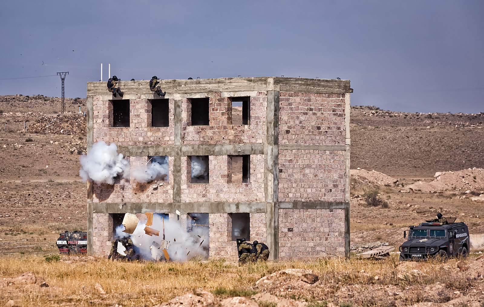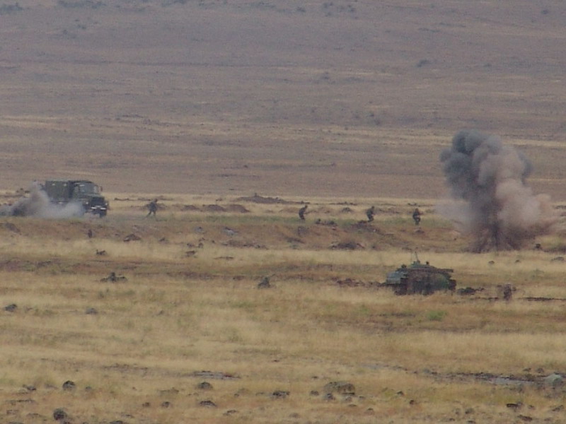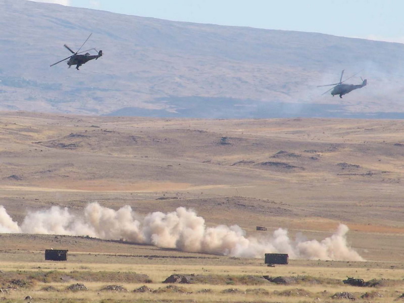 Практическая отработка учебно-боевых задач по блокированию и уничтожению диверсионно-террористических групп была осуществлена на войсковом полигоне с высадкой десанта и проведением учебно-боевой стрельбы, с задействованием сил и средств войсковых подразделений Министерства обороны Республики Армения.