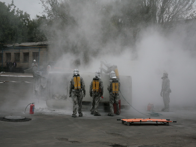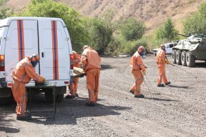 В ходе третьего этапа учения осуществлялись мероприятия по ликвидации последствий террористического акта силами МЧС Республики Казахстан.