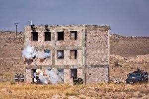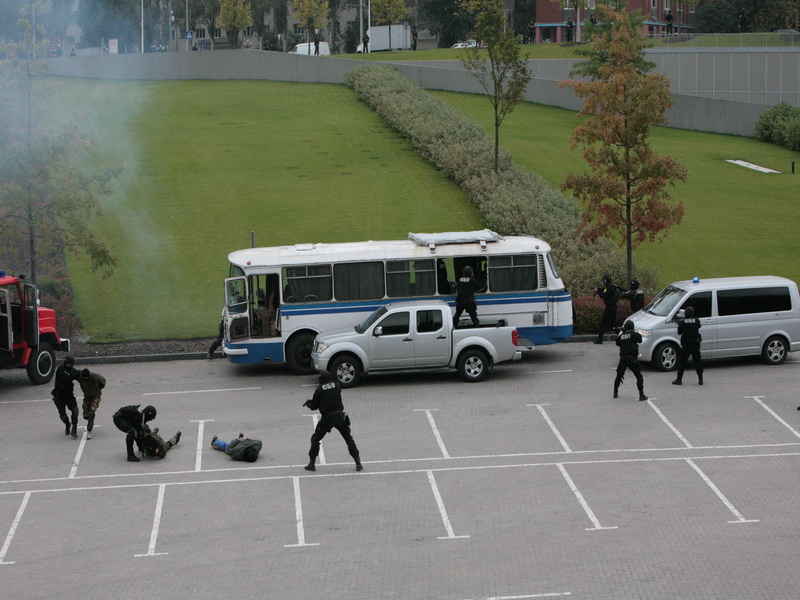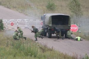 Специальная операция по блокированию и условному уничтожению террористов, прорвавшихся через государственную границу, проводилась на военном полигоне Сухопутных войск Вооруженных сил РБ (г.Борисов) подразделениями сил специальных операций ВС и Государственного пограничного комитета РБ.