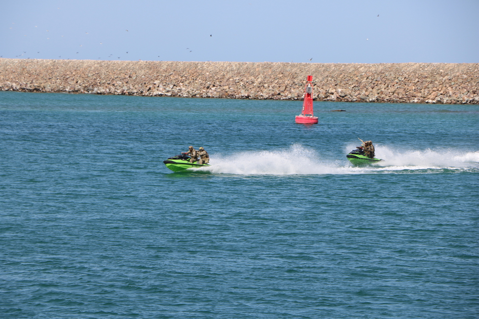 Подразделениями ССН «А» и ПС КНБ, «Беркут» Национальной гвардии, «Сункар» МВД, сил специальных операций МО Республики Казахстан при содействии ЦСН ФСБ России продемонстрированы практические действия по выявлению, блокированию и нейтрализации групп условных террористов, а также освобождения заложников на захваченном морском судне «Корабль Каnysh Satpayev» и плавучей буровой установке в открытом море. Подразделениями МЧС Республики Казахстан продемонстрированы действия по ликвидации последствий террористического акта.