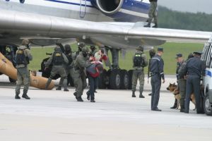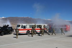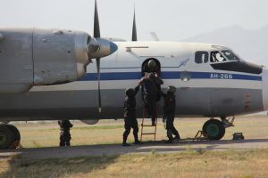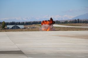 В рамках второго этапа учения (25 сентября) в международном аэропорту "Иссык-Куль" под руководством Государственного комитета национальной безопасности Кыргызской Республики (ГКНБ КР) проведена антитеррористическая операция по принуждению к посадке самолета, захваченного условными террористами, их нейтрализации, освобождению заложников силами спецподразделений ГКНБ и МВД Кыргызской Республики.