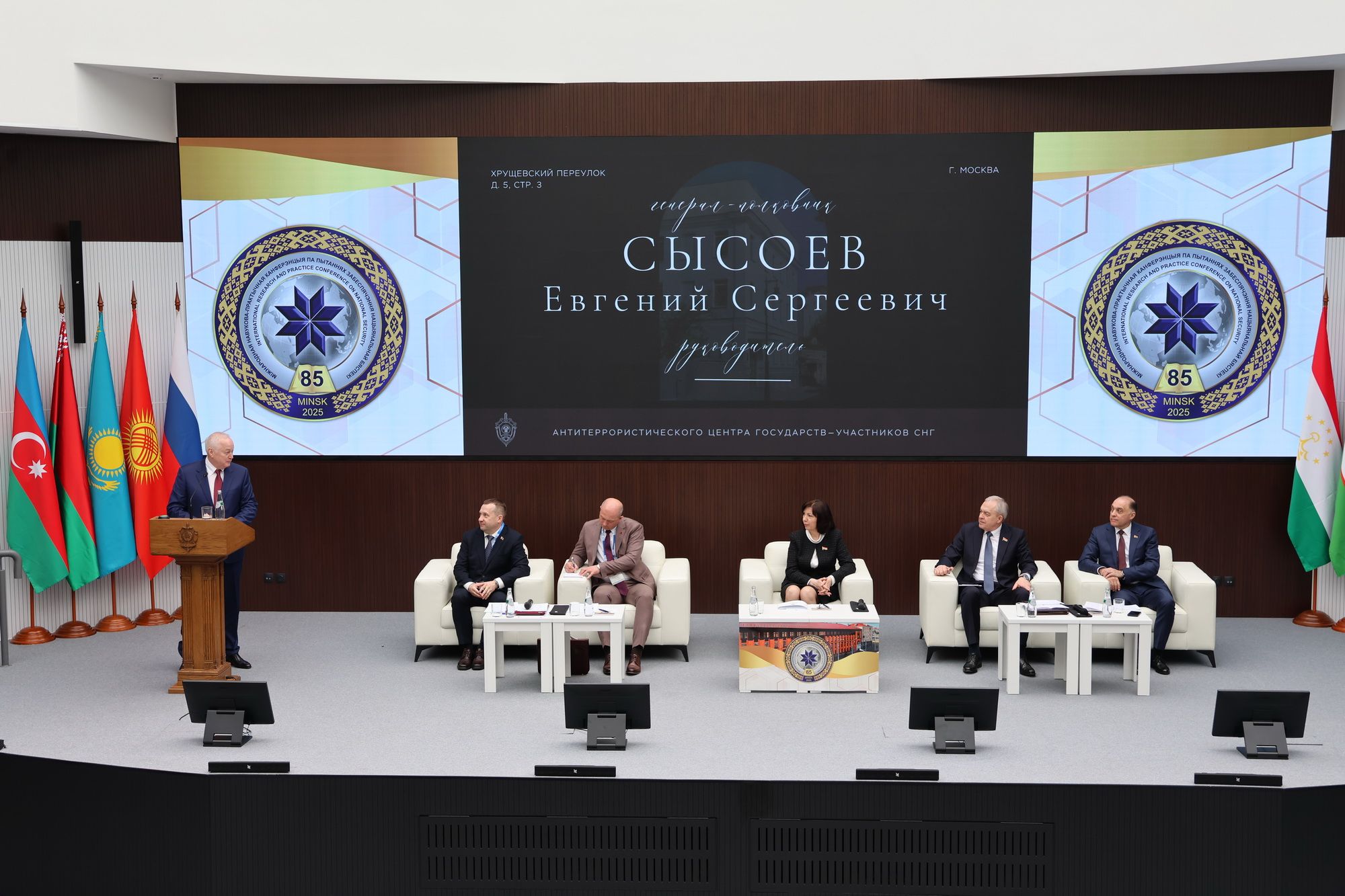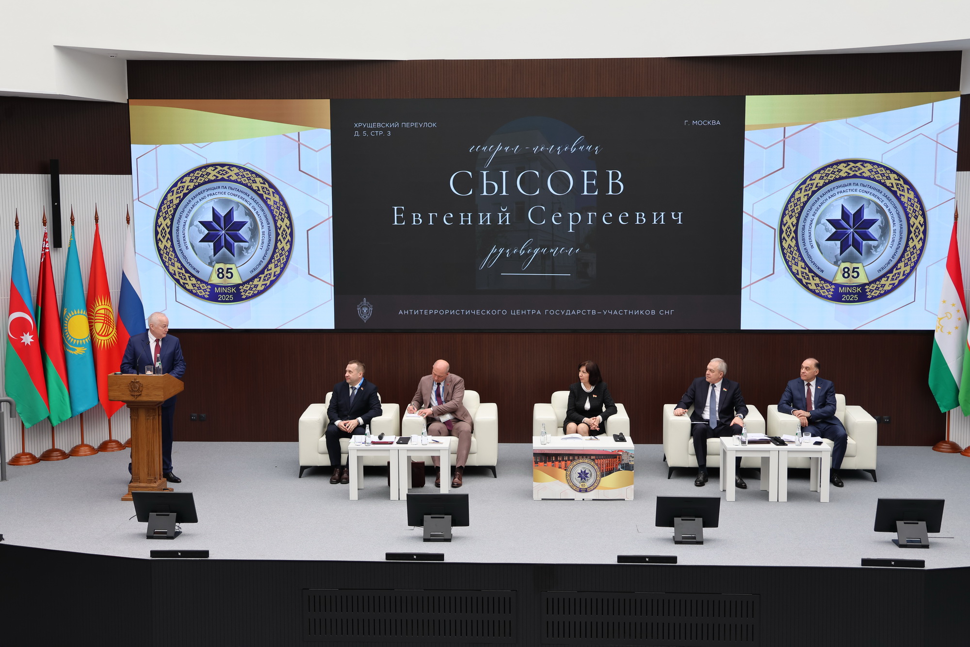 1-3 апреля 2025 года в г. Минске делегация АТЦ СНГ во главе с его Руководителем генерал-полковником Сысоевым Е.С. приняла участие в международной научно-практической конференции «Обеспечение национальной, региональной и международной безопасности: актуальные проблемы и решения», посвященной 85-летию образования Академии национальной безопасности Республики Беларусь.