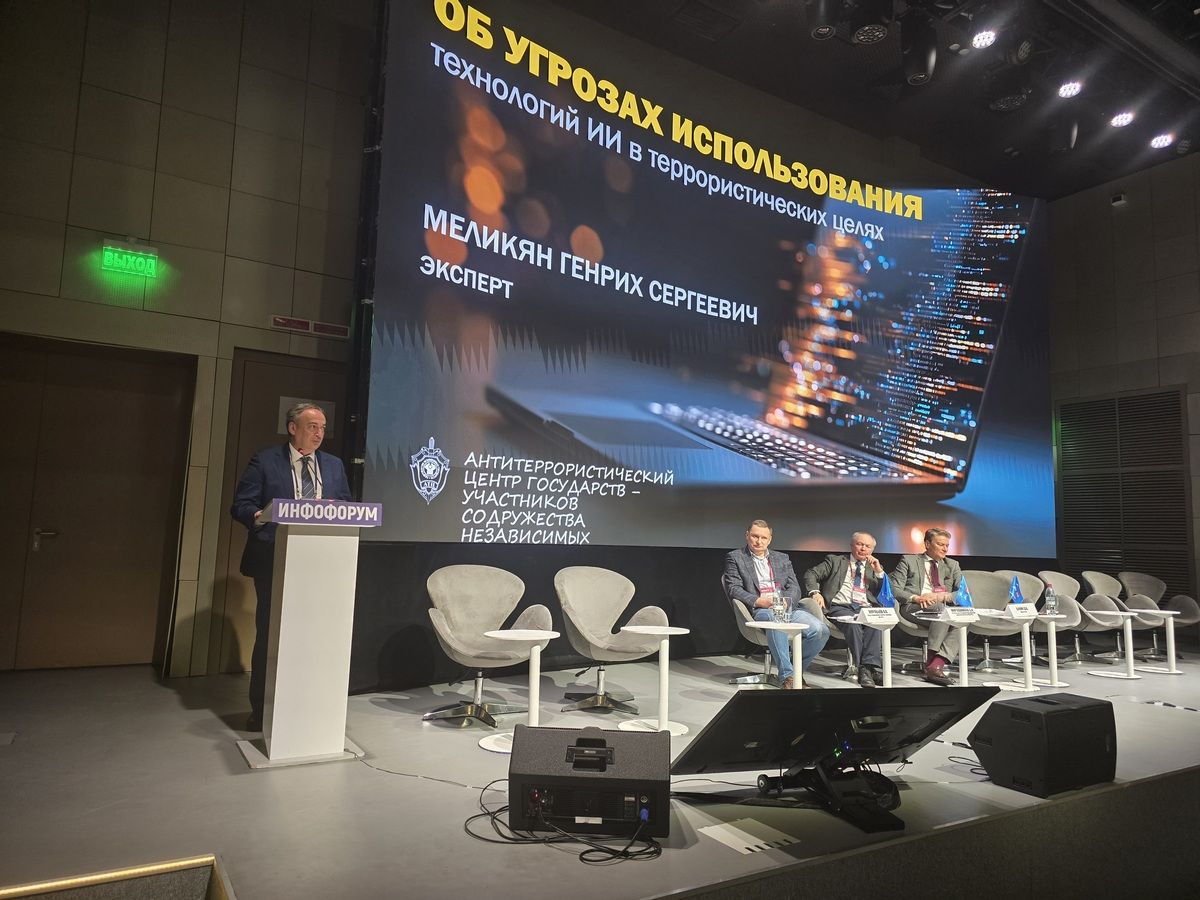 Представитель Центра выступил с докладом «Об угрозах использования технологий искусственного интеллекта в террористических целях», в котором отметил возможности использования нейросетей и чат-ботов для вербовки, агитации, совершения кибератак, а также в создании оружия, взрывных устройств, взрывчатых, отравляющих и иных опасных веществ в террористических целях.