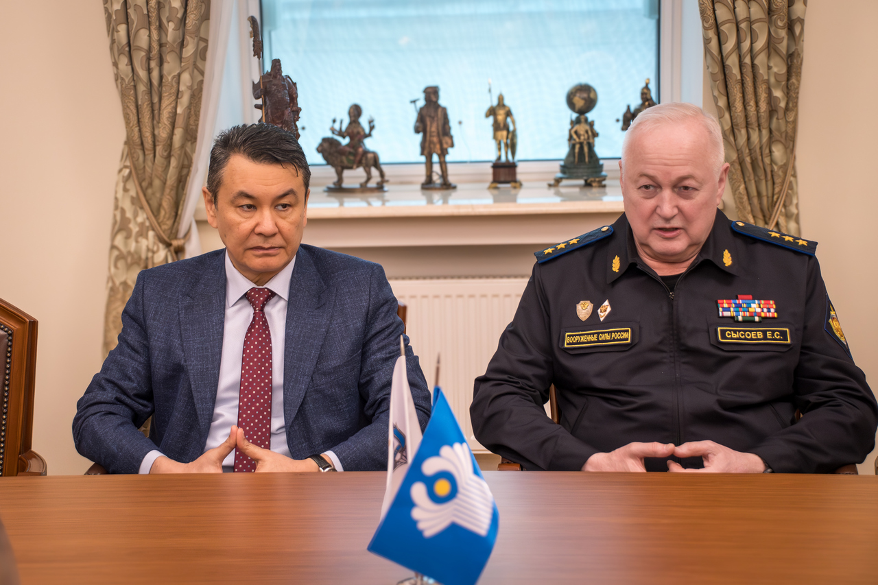 2 апреля 2026 года в штаб-квартире АТЦ СНГ состоялась встреча Руководителя Центра Е.С. Сысоева с начальником Департамента кадров КНБ Республики Казахстан Шаяхметовым Е.З. и начальником Академии КНБ Республики Казахстан Мукашевым А.Г.
