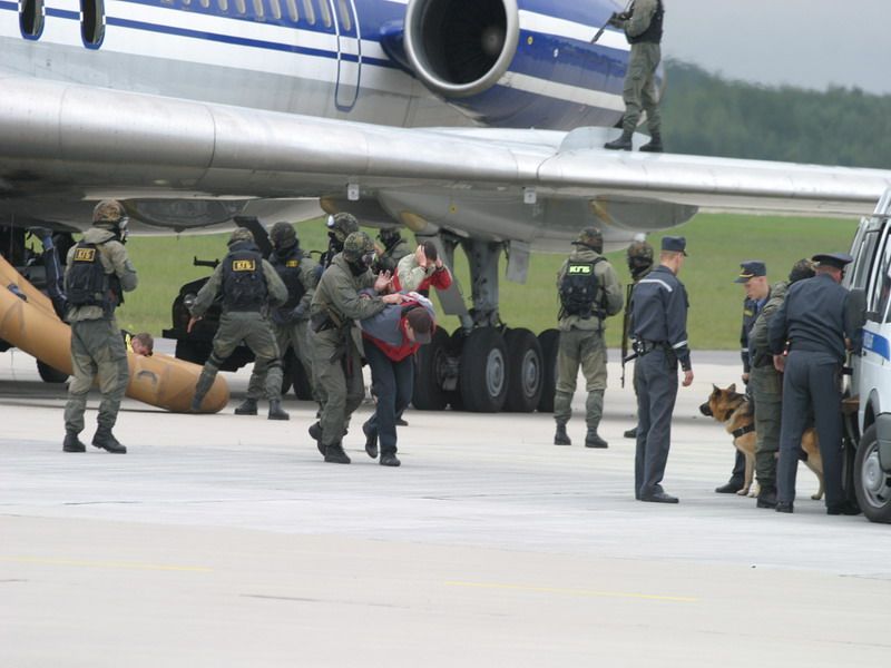 Специальную операцию по освобождению заложников и нейтрализации условных террористов в аэропорту «Минск» и на воздушном транспорте провела группа «А» КГБ Республики Беларусь.