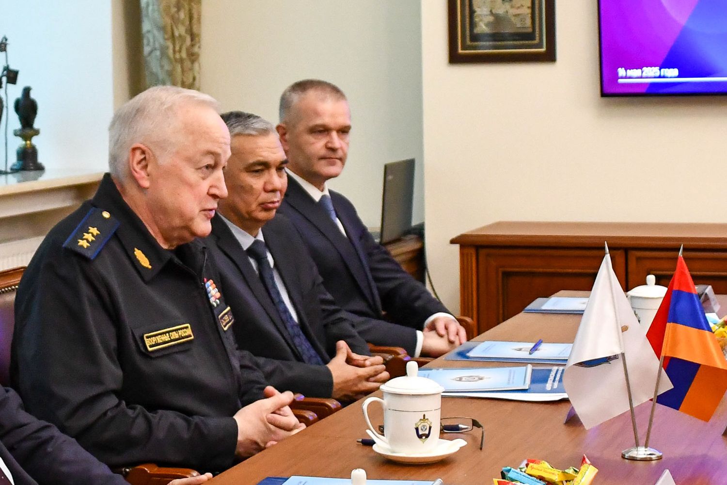 2025年5月14日独联体反恐中心主任斯索耶夫与亚美尼亚共和国国家安全局局长阿巴兹扬在独联体反恐中心总部举行会晤。